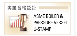 “ASME BOILER & PRESSURE VESSEL U-STAMP”認證,2024年增加 S-STAMP 認証。 |